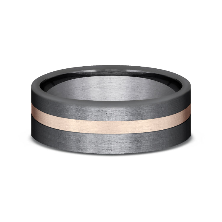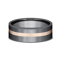 7mmDarkened Tantalum and 14K Rose GoldSatin finish with an offset stripe