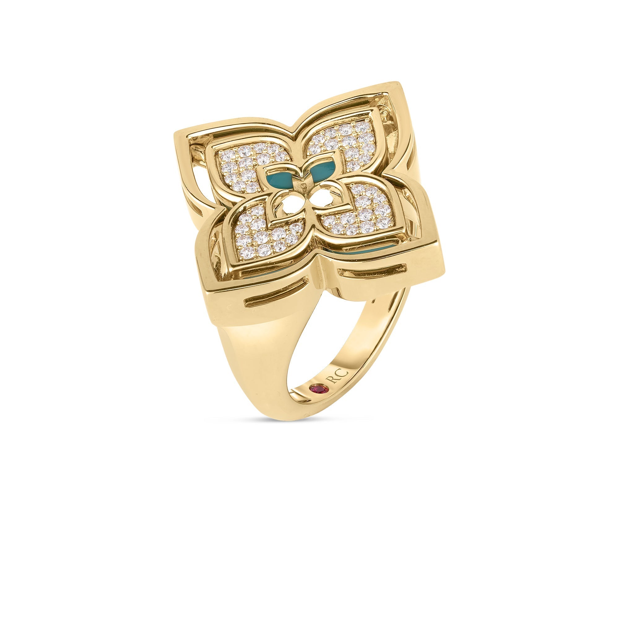 Simple yet classic this magnetic lovebright diamond ring will suit her style. Beautifully crafted in cool 14 karat yellow and white gold, this ring features a trios of framed round diamond arrays arranged side-by-side along the shank. 33 round cut diamonds are set in...